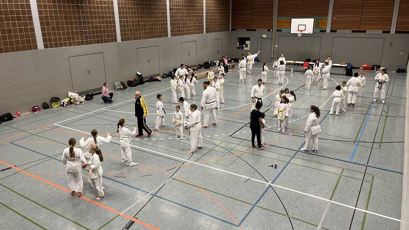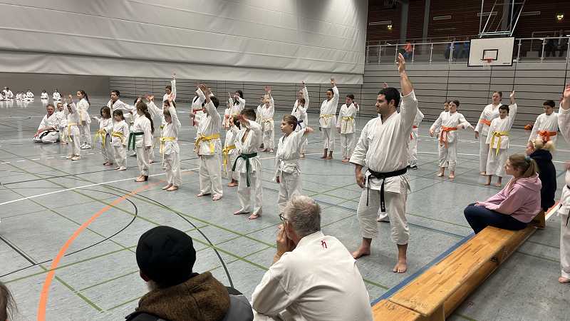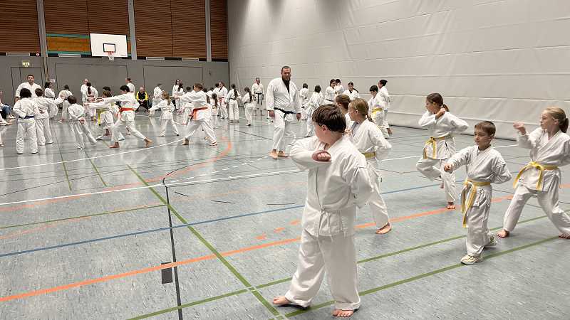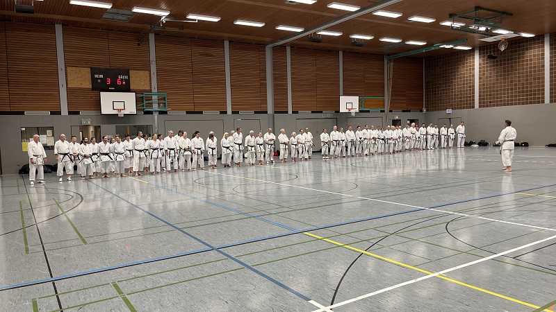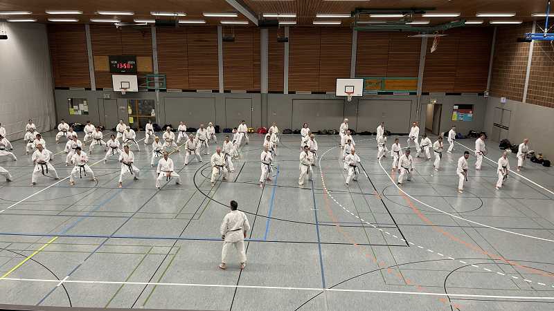 Aus ganz Baden-Württemberg reisten ca. 70 Karatekas aus insgesamt 27 Dojos an, um bei Timo Gißler (5. Dan und Deutscher Meister) zu trainieren und ihr Wissen und Können zu erweitern.