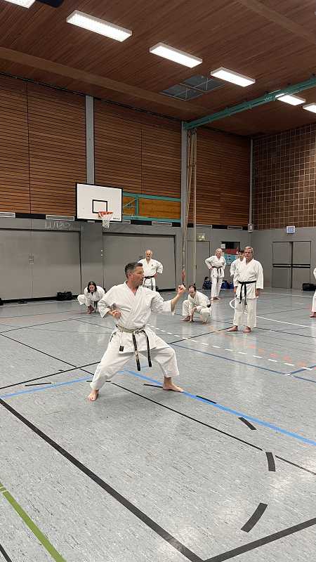 In der Unterstufe wurde die Kata (Scheinkampf) Heian Yondan vermittelt und in der Oberstufe die Kata Sochin mit Anwendung am Partner.