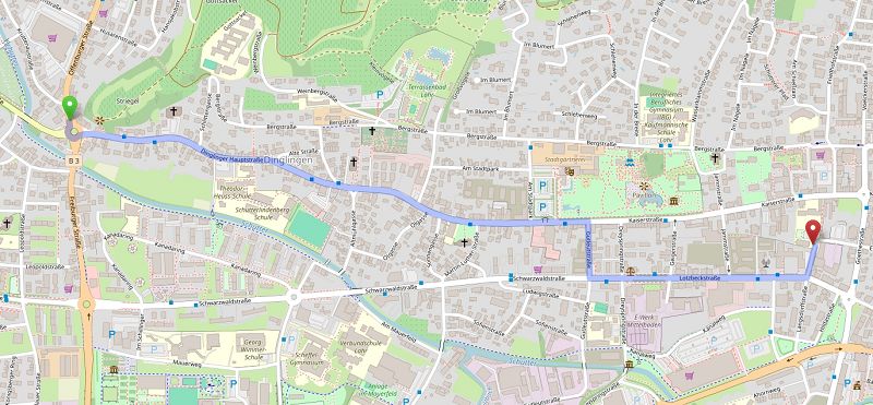Ihr findet die Halle im neuen Bürgerpark, von der Bundesstraße 3 kommend in die Schwarzwaldstraße abbiegen in Richtung Stadtmitte. Am ersten Kreisverkehr rechts abbiegen und nach ca. 200 m wieder rechts abbiegen in den Mauerweg. Nach ca. 100 m links abbiegen und zwischen dem Fitnessclub und der Ortenauhalle hindurchfahren auf den Parkplatz. Zu Fuß (roter Pfeil) sind es nach ca. 50 m zum Halleneingang.