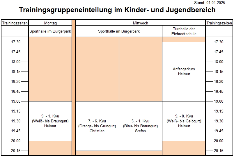 Wir trainieren ausschließlich in Turn- und Gymnastikhallen der Stadt Lahr. Aus diesem Grunde findet an beweglichen Ferientagen der Stadt und Schulferien kein Training statt.