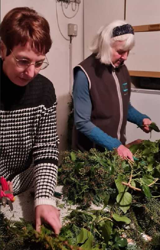 Bei Glühwein und Weihnachtsplätzchen etc. wurden wieder hochkonzentriert die Adventskränze gebunden.