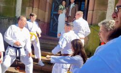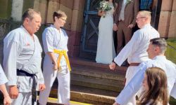 Wir vom Karate-Do Lahr haben es uns natürlich nicht nehmen lassen, die beiden nach der kirchlichen Trauung zu überraschen und nach guter alter Karatetradition zu empfangen.