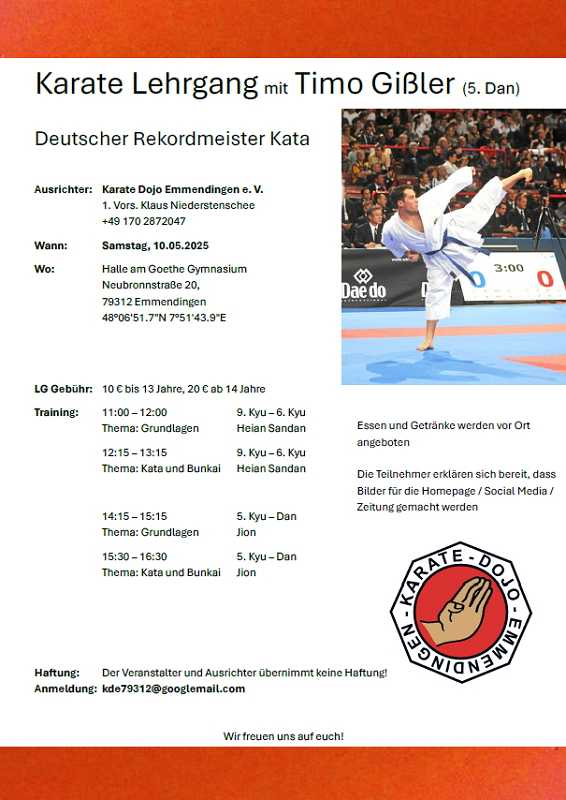 Einladung zum Karatelehrgang in Emmendingen mit Timo Gißler…